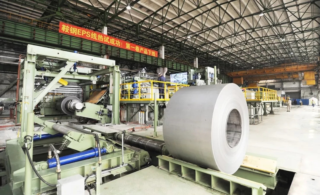 5月31日15時40分,第一卷2.75mm×1025mm免酸洗鋼卷在鞍鋼股份熱軋帶鋼廠順利下線,這標志著鞍鋼股份首條EPS(鋼卷表面免酸洗)處理線一次熱負荷試車成功。
