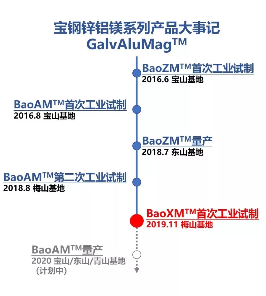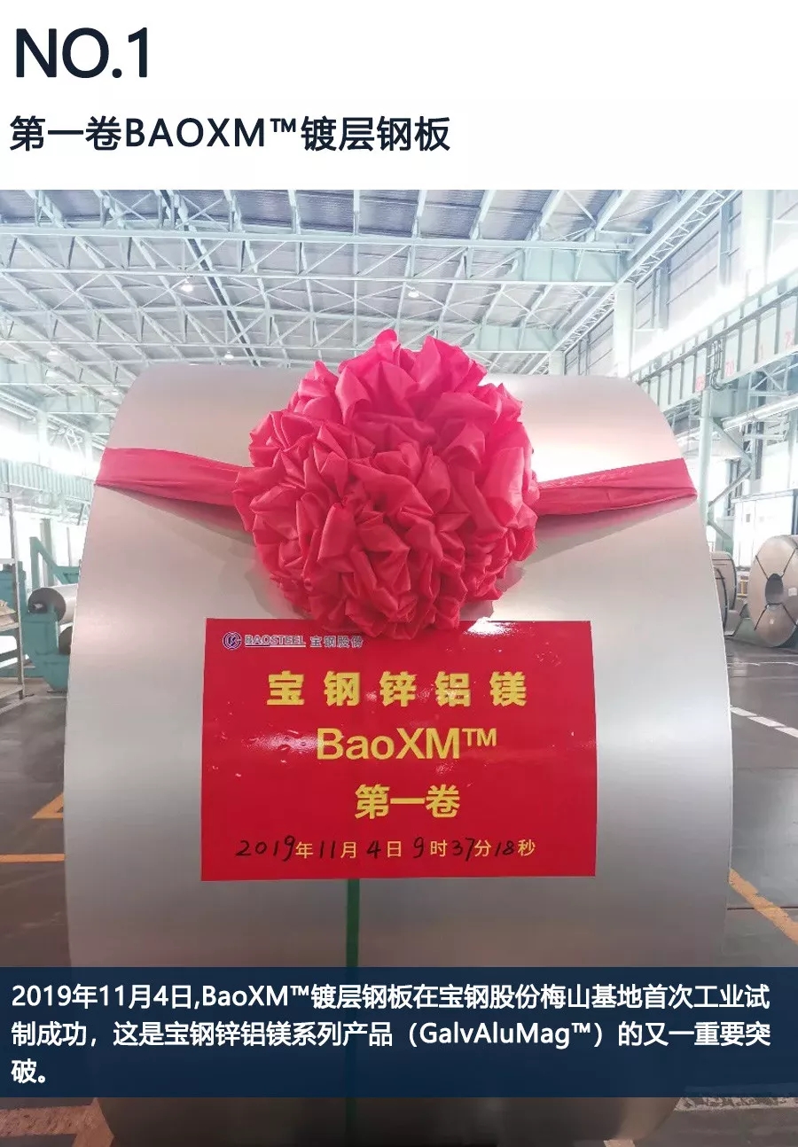 BaoXM鍍層鋼板在寶鋼股份梅山基地首次工業試制成功,這是寶鋼鋅鋁鎂系列產品(GalvAluMag?)的又一重要突破。