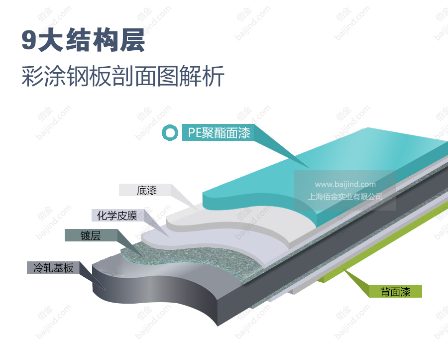 PE聚酯彩涂板附著力良好,在成型性和室外耐久性方面范圍較寬, 耐化學藥品性中等。廣泛應用于普通工業廠房及倉儲物流庫房的圍護系統中。