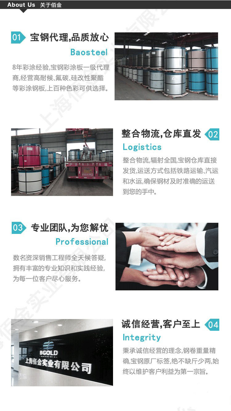 佰金華中銷售中心施行全方位的服務,即鋼結構維護系統選材,配色,銷售,壓型加工、物流一站式服務,竭誠為華中地區廣大用戶提供優質、及時的服務。