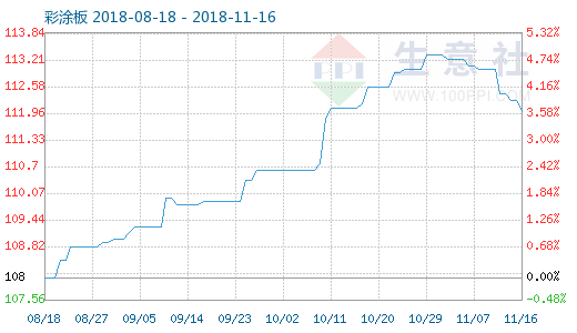 彩涂板商品指數自2018-11-1起,16天陸續下降了1.156%。