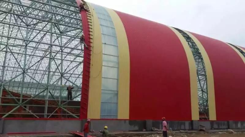 2013年新冶鋼實施煉鋼廠二期中棒線項目,指定使用寶鋼黃石彩涂產品,根據寶鋼多年在冶煉行業的產品應用經驗,經過選材推薦,產品規格選用0.8*1000 高性能海藍/0.6*1000高性能白灰,基板鍍鋁鋅150克,工程總量600多噸,20166月經過工程實地回訪,涂層保持完好,顏色仍舊亮麗,后期陸續承建新冶鋼技改工程。